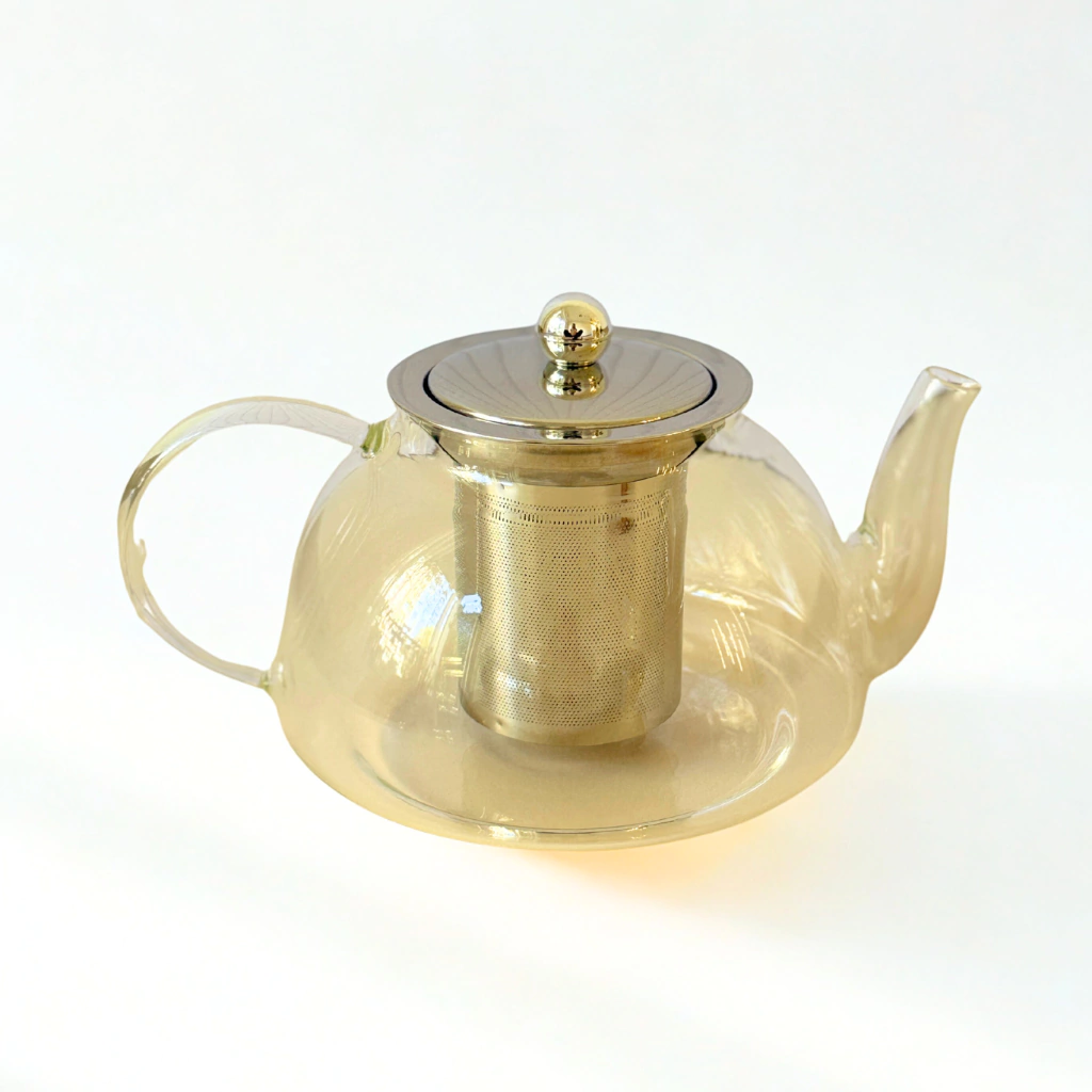 Elegante, liviana y funcional. Está hecha de vidrio resistente al calor y tiene un infusor metálico integrado que permite ver cómo se abren las hebras mientras se infusionan. Su diseño delicado convierte cualquier momento en un ritual de calma.